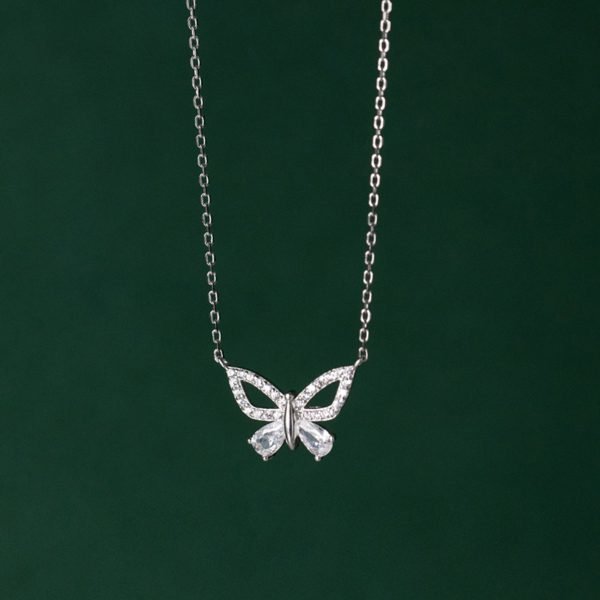 The delicate chain of the necklace complements the butterfly pendant beautifully, creating a harmonious and eye-catching design. The adjustable clavicle length ensures a comfortable fit that suits your preference. Wear it close to your heart and let the butterfly pendant flutter with every movement, symbolizing grace, transformation, and freedom.