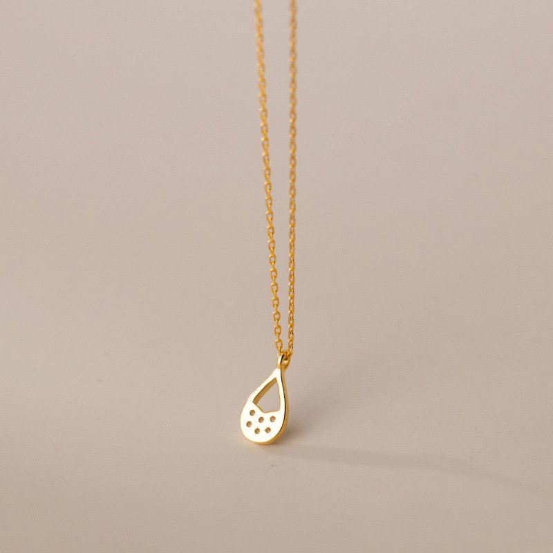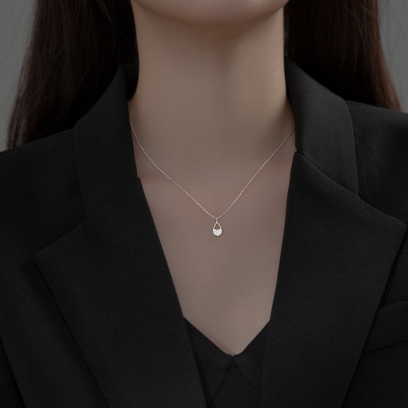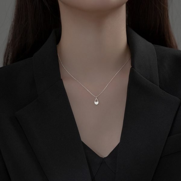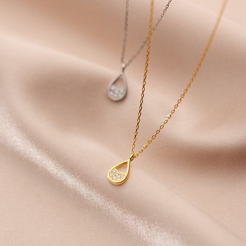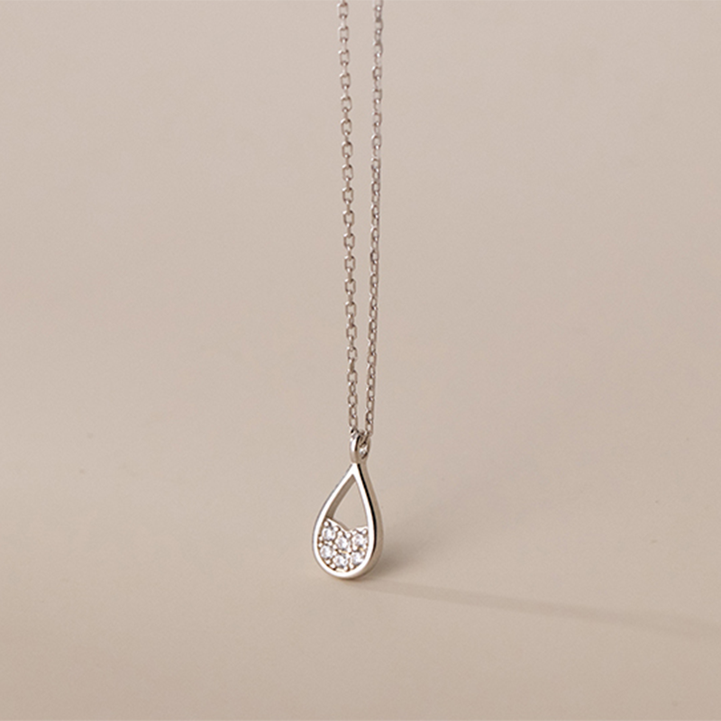 Elevate your style with the enchanting beauty of the Dazzling Cascade Necklace, a 925 sterling silver necklace that combines simplicity with dazzling details. This exquisite necklace features a water drop pendant, where half of it is delicately hollow and the other half is adorned with shimmering zircon stones, suspended from a dainty chain.