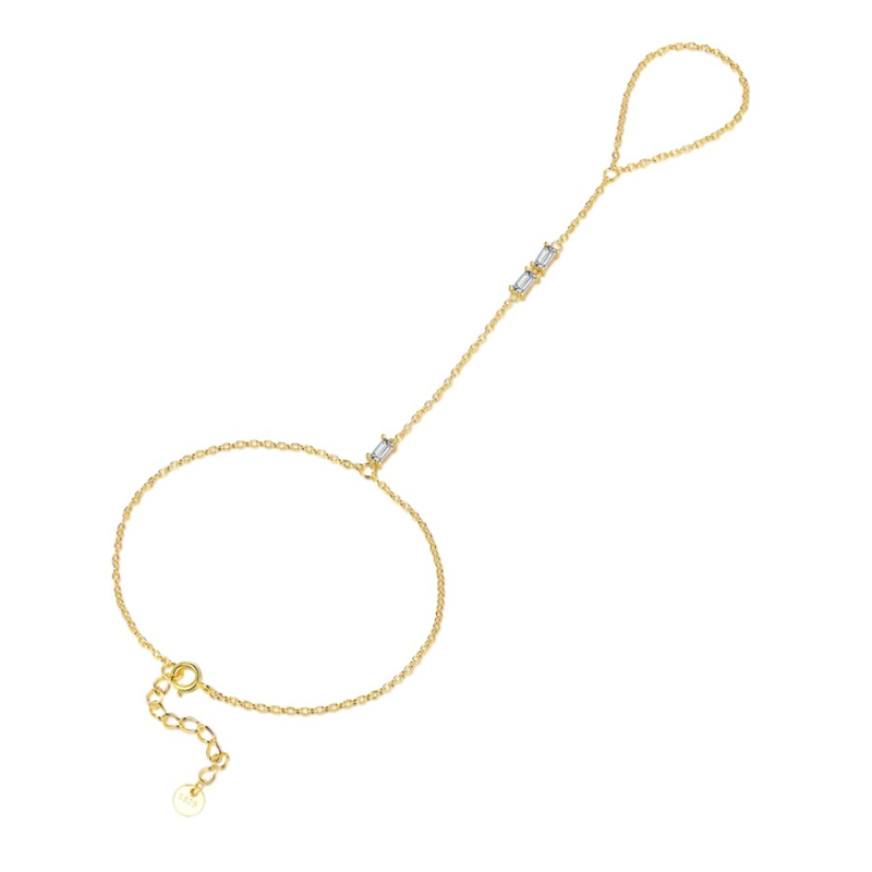 Discover the timeless charm of the Elegant Gold Hand Chain Bracelet by Dolce Jewellery. Crafted from genuine 925 sterling silver with a luxurious gold finish and adorned with sparkling zirconia stones, this piece beautifully combines sophistication with delicate artistry.