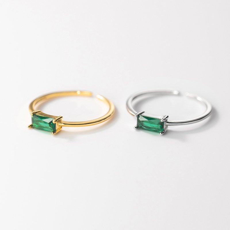 Elevate your style with the captivating beauty of our Emerald Enchantment Ring. Crafted with meticulous attention to detail, this ring showcases a mesmerizing rectangular green zircon stone that exudes a sense of elegance and sophistication.