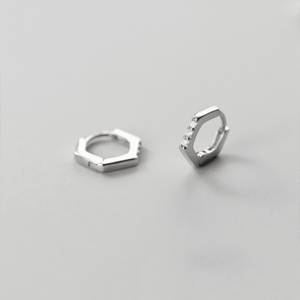 Shining, these mini hexagonal hoop earrings will give any formal or casual look a refreshing flair. Mind the crystal detailing for a higher allure. Dolce Jewellery never disappoints.