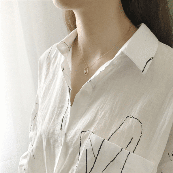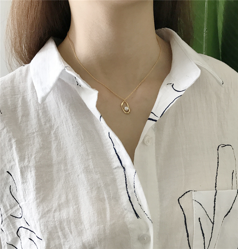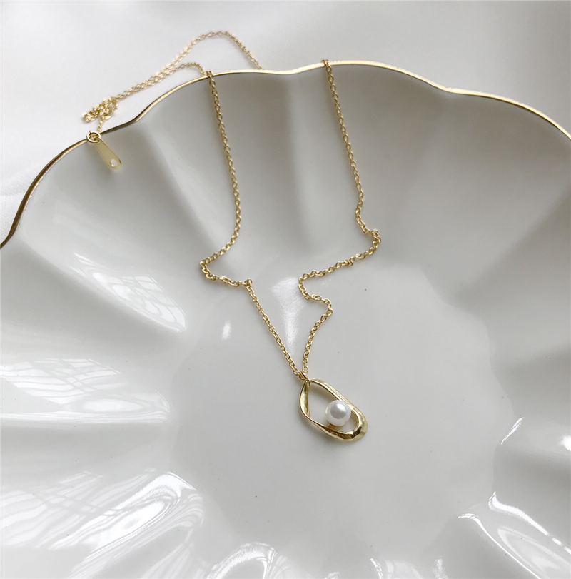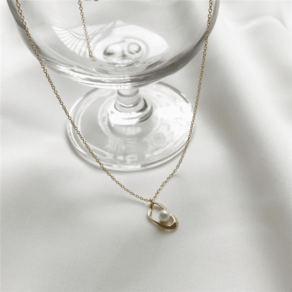 The pendant serves as the centerpiece, showcasing its intricate geometric design that adds a contemporary touch to your look. The mesmerizing freshwater pearl brings a timeless beauty and sophistication to the necklace, creating a captivating contrast between modern and classic elements.
