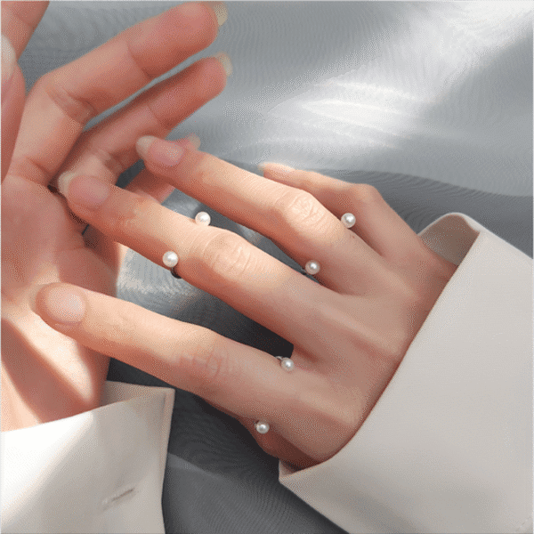 The open finger design adds a touch of contemporary sophistication to the ring, allowing it to effortlessly wrap around your finger with grace. The lustrous pearls at each end of the band bring a touch of timeless beauty and elegance to the overall design.