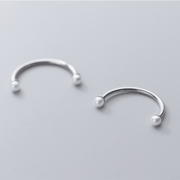 Enhance your style with the exquisite beauty of our Pearl Elegance Open Finger Ring. This unique and fashionable ring features an open design with a pearl delicately placed at each end of the band. Crafted from genuine 925 sterling silver, this ring showcases the perfect blend of elegance and modernity.