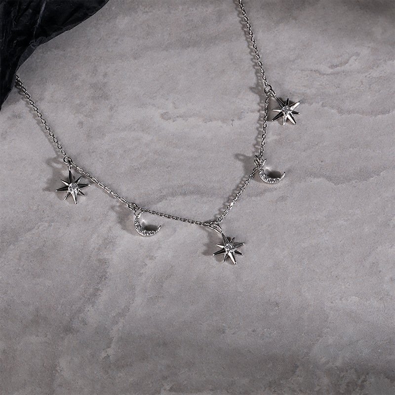 Experience the enchantment of the Starry Night Necklace, a luxurious and captivating piece of wedding and party jewellery. Crafted from genuine 925 sterling silver, this necklace features exquisite star and moon pendants adorned with shimmering zircons, creating a celestial-inspired design that will leave you mesmerized.