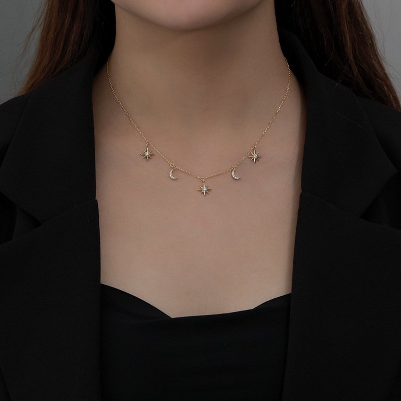 The clavicle chain necklace elegantly drapes along your collarbone, adding a touch of elegance and sophistication to your ensemble. The combination of the sparkling zircons and celestial pendants creates a harmonious balance between glamour and charm.